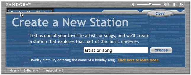 In less than a minute, Pandora creates a customized radio station for you. It does this by asking you to start with your favorite song. Using data from the "Music Genome Project" to find songs which are similar in a musical sense to what you like. You can skip songs you don't like, add more favorites on your own and rate the ones it chooses to help it refine and expand your radio station.