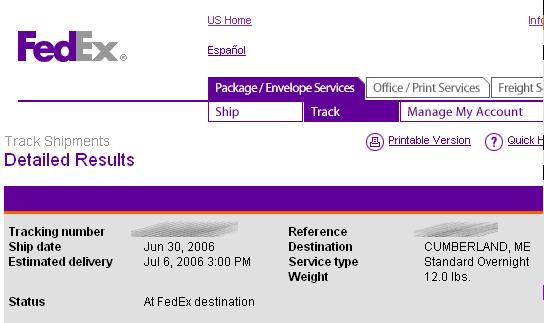 On the positive side, if you've ever had the option of picking FedEx or UPS on a web site at about the same price and wondered if one was better than the other.....I guess the answer is fairly easy to spot. I probably will not have the slightest pause in choosing at any future date.