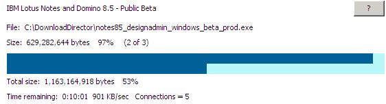 The web servers IBM is using seem to be overwhelmed <insert Portal/Websphere comment here> but once you get through the transfer is still very fast. IBM isn't having a bandwidth problem (see the 900KB/sec transfer rate below). Just a scalability one with their choice of servers for this task.